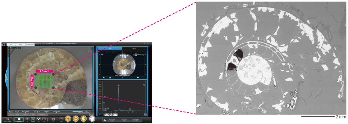 The Zeromag function simplifies navigation providing a seamless transition from the optical to SEM image. The SEM, optical image and holder graphic are all linked for a global view of analysis locations.