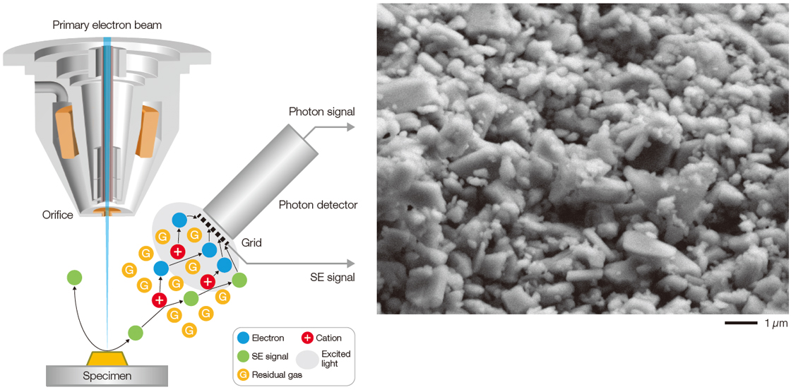 This new detector collects both electron and photon signals providing an image with high S/N and enhanced topographic information.
