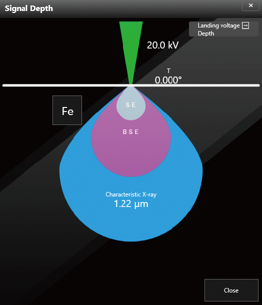 This function displays the analysis depth (approx.) in the specimen. For element analysis, it is very useful.